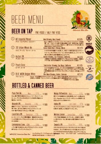 8月21日(月) 定休日 ※毎週月曜日はWaileleの定休日として頂いております。 ご迷惑をお掛けいたしますが、何卒宜しくお願い致します。 ↓ 8月22日(火) 18時~24時 ~本日の樽生~ ①Big Wave Golden Ale(KONA Brewing) →Longboard Island Lager (KONA Brewing) ②…