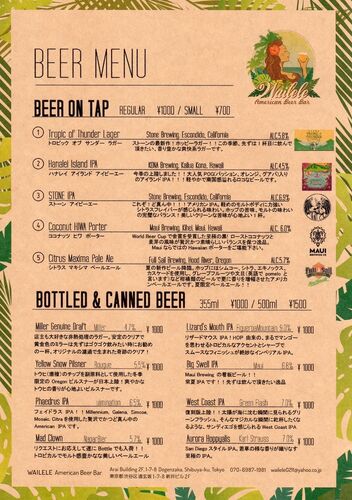 7月5日(金)《Mauiグッズ販売中》18時~24時(23時LO) ~本日の樽生~ ① Pines to Palms (Maui Brewing) ②La Perouse White (Maui Brewing) ③Double Overhead IPA (Maui Brewing)→ Mosaic Mo' Betta IPA (Maui Brewing) ④Coconut Hiwa Porter (Maui Brewing) ⑤…